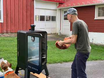 We got a new smoker and made brisket for Labor day BBQ. David made an out of this world brisket and homemade bbq sauce to go with it. I made a chocolate cake with salted caramel cream cheese buttercream. Mike and Tara brought some homegrown fresh sweet corns and cooked them fresh at the BBQ. We also made potato salad, bean salad, coleslaw, peach sangria, steak, grilled salmon. Even though It rained toward the end of the day, we had such a great time with friends and family, what a great way to end the summer. We're already looking forward to the nice cool crisp air of the Fall.