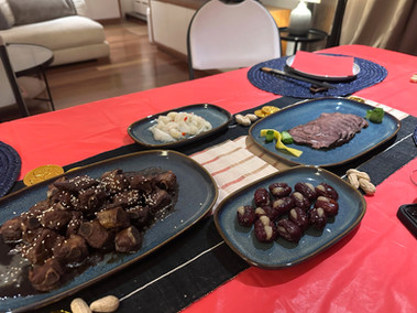 Senina shared the ribs, and garlic shrimp recipe below. I made mooncakes and brought them as desserts.